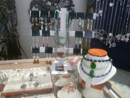 These pictures show the beach glass jewelry displayed at Jolie Boutique.
